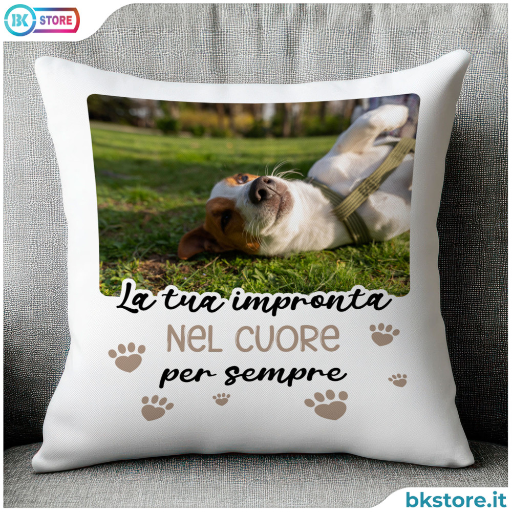 Cuscino con Foto Cane o Gatto – La tua / Vostra impronta nel cuore per sempre