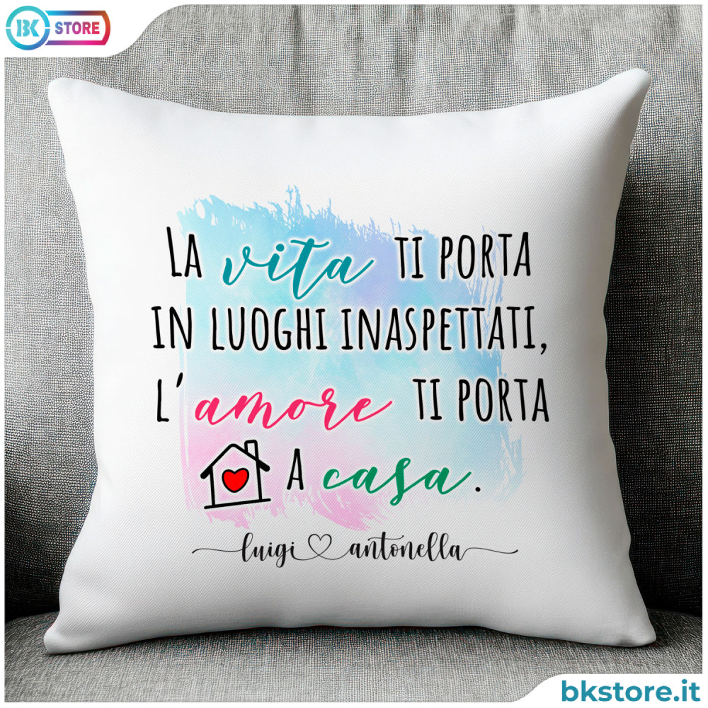 Cuscino Personalizzato per Innamorati e Famiglie – L'amore ti porta a Casa