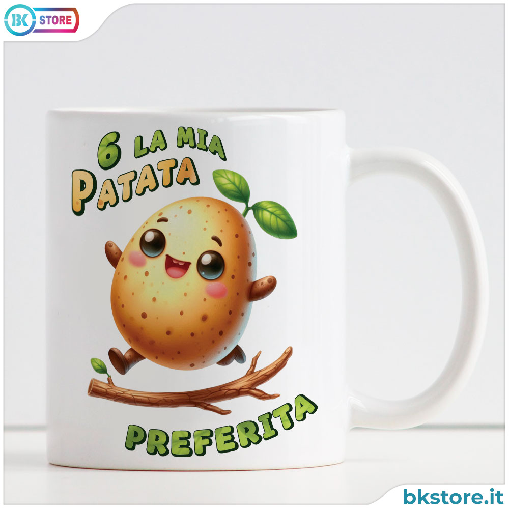 Cerchi regalo simpatico e ironico di San Valentino che dica “ti amo” ma con il sorriso? Questa tazza in ceramica è la risposta perfetta. Pensata per la tua fidanzata o moglie che chiami affettuosamente “patatina”, unisce romanticismo e ironia senza esagerare (ma quanto basta). Sul fronte una dolcissima patatina illustrata, pronta a rendere più felici colazioni, pause caffè e momenti di relax. È utile e più originale del solito cioccolatino che sparisce in cinque minuti. Sul retro aggiungi il nome della tua patatina o una dedica personalizzata, così potrà pensare a te ogni volta che beve qualcosa (anche quando è ancora mezza addormentata). In ceramica perfetta per l’uso quotidiano. Un regalo ironico, tenero e indimenticabile, proprio come lei… o almeno come speri che pensi!