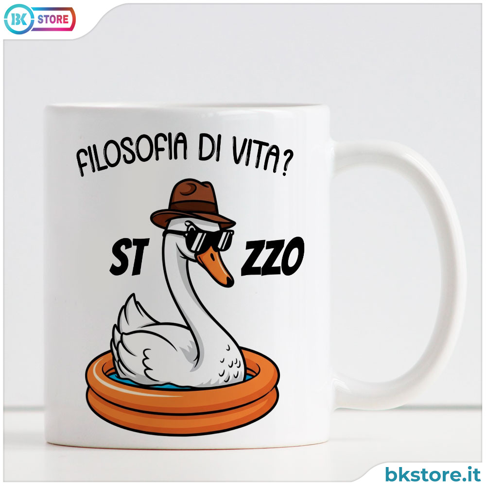 Per chi prende la vita con leggerezza e un pizzico di sana ironia, questa tazza divertente è la compagna perfetta di ogni giornata. Sul fronte la domanda che tutti si pongono: “Filosofia di vita?”. La risposta non è scritta, ma si intuisce con un sorriso grazie a un divertente rebus illustrato con un’oca, simbolo di autoironia. Un messaggio che strappa una risata già dal primo caffè del mattino. Ideale come idea regalo per amici, colleghi o per te stesso, perché non prendersi troppo sul serio è spesso la scelta più saggia. Una tazza originale che trasforma ogni pausa in un momento di buon umore e ricorda che, a volte, vivere felici significa anche saper ridere di sé. Spedita nella propria scatolina regalo