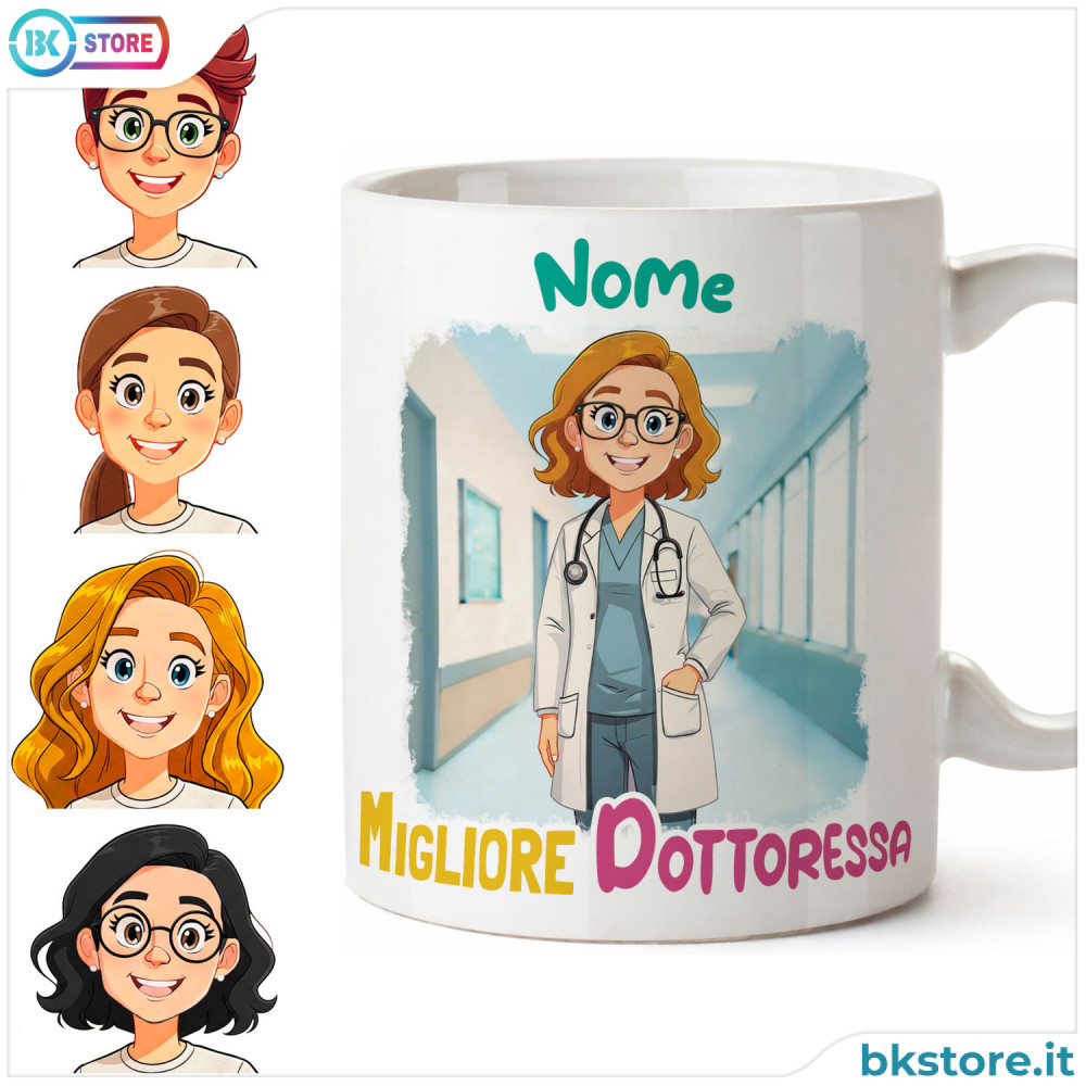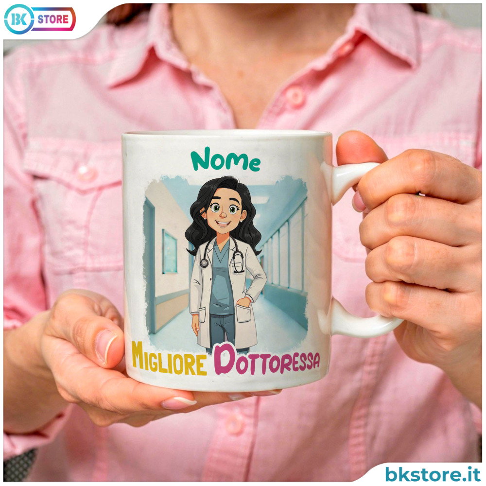 Sorprendi una persona speciale con una tazza in ceramica personalizzata con avatar dottoressa, un idea regalo unico e ricco di significato. Perfetta come regalo per amica, collega o persona cara, ti permette di scegliere pettinatura, colore dei capelli e degli occhi per creare un’illustrazione che la rappresenti davvero. Personalizza il fronte con il nome e aggiungi una dedica emozionante sul retro per renderla ancora più speciale. Ideale per laurea in medicina, compleanno, Natale o per dire grazie in modo originale. Realizzata in ceramica di alta qualità, è resistente e perfetta per caffè o tè in studio. Idea regalo personalizzata che unisce affetto, professionalità e stile