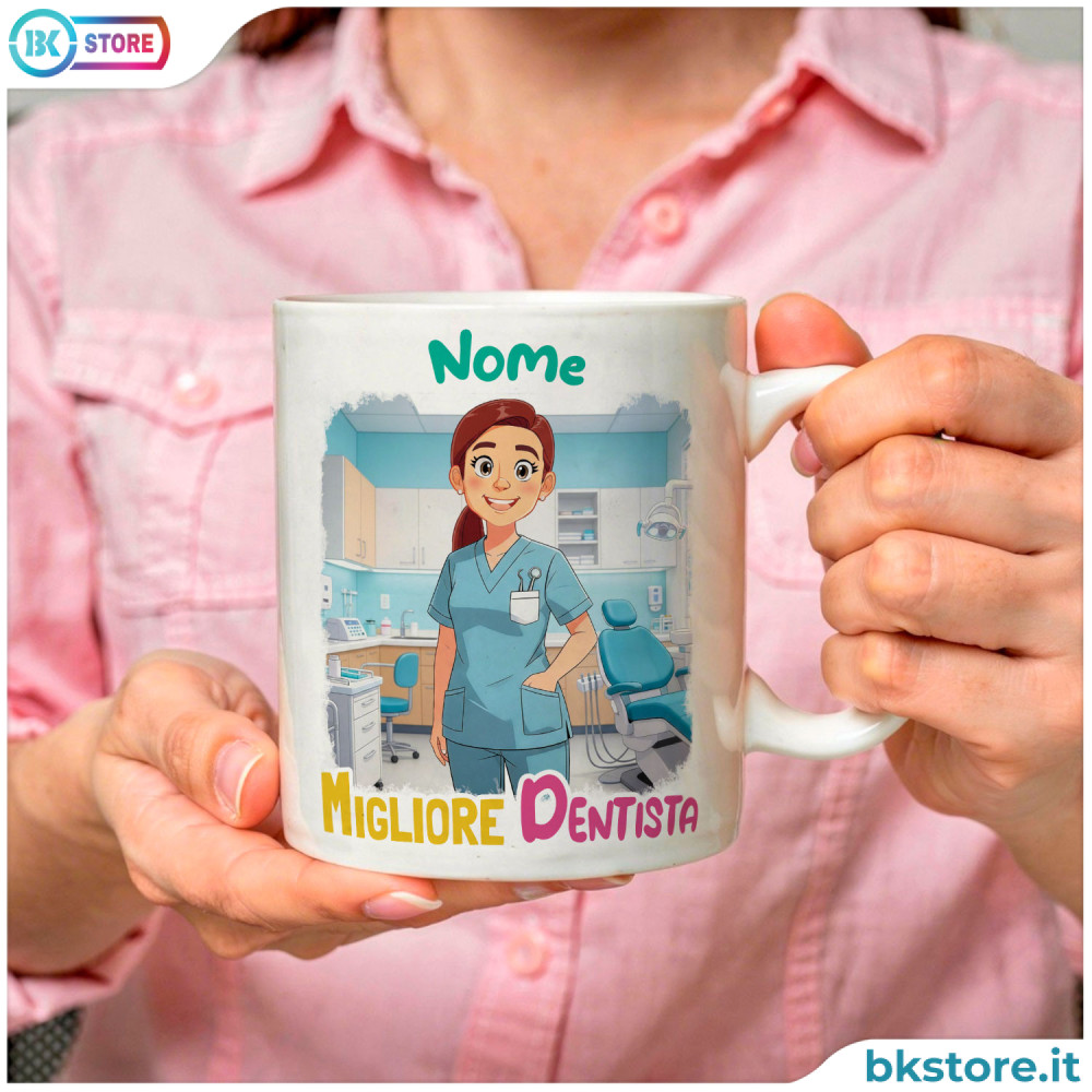 Sul retro puoi aggiungere una dedica, il nome dello studio o una frase simpatica a tema odontoiatria. Realizzata in ceramica, con stampa brillante e resistente ai lavaggi, è un regalo personalizzato originale che unisce professionalità, stile e attenzione ai dettagli per dentisti e professionisti del settore.